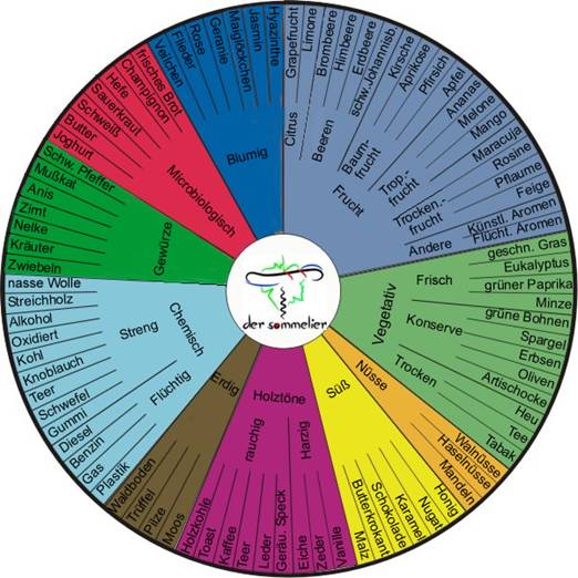 Mit Hilfe des Aromakreis können Sie leichter Weine beurteilen und das Gerochene und Geschmeckte in Namen benennen.
